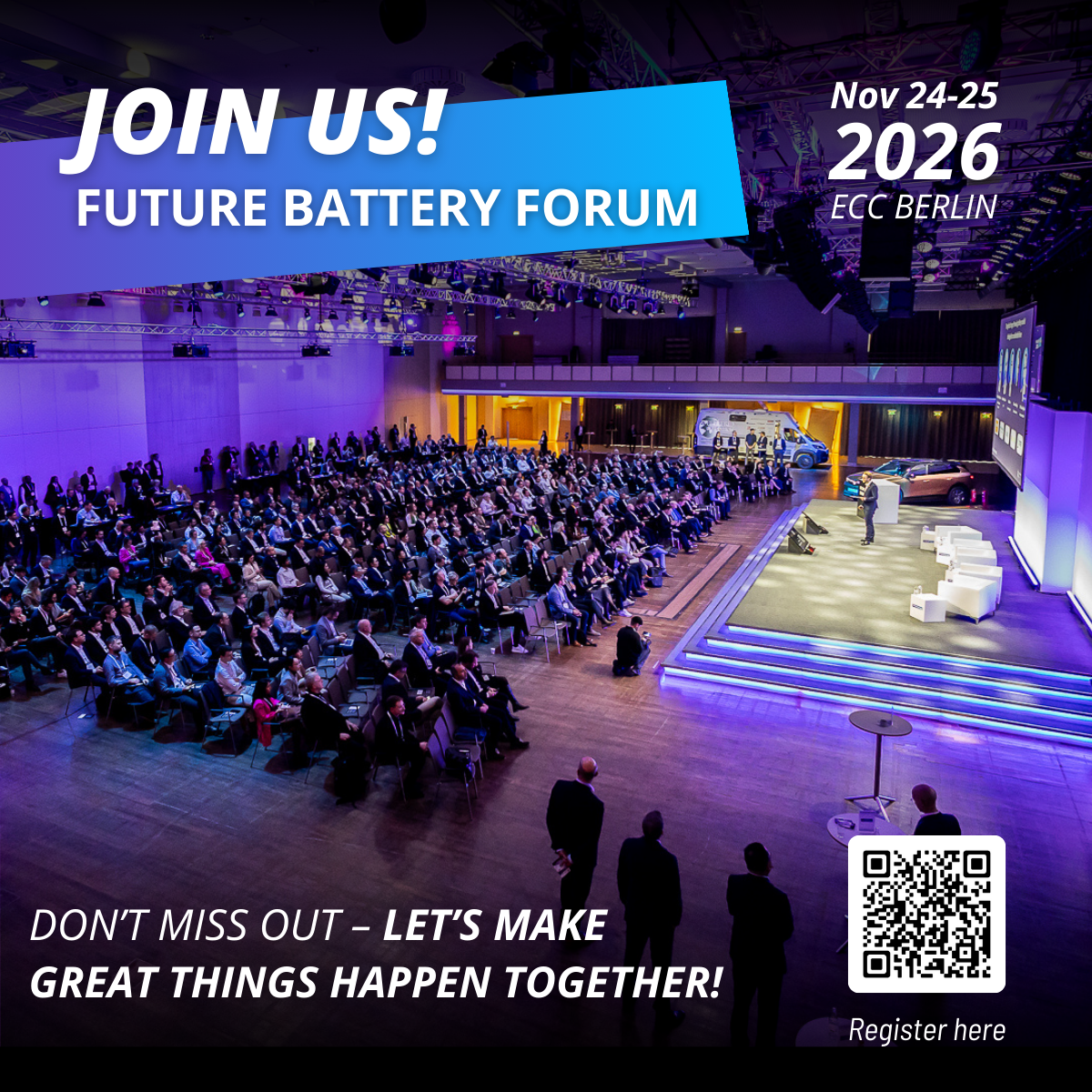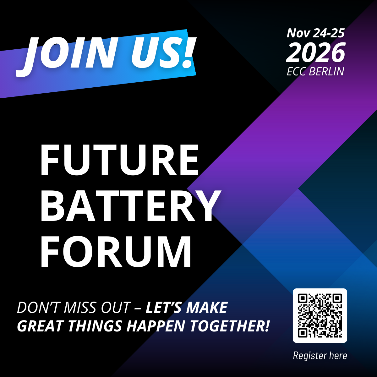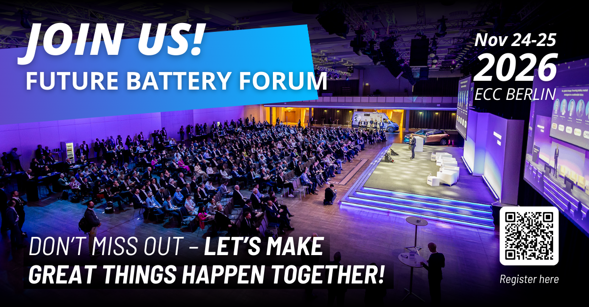 👉 Bitte nutzen Sie unseren Hashtag #futurebattery26 und taggen Sie unsere Fokuspage @Future Battery Forum